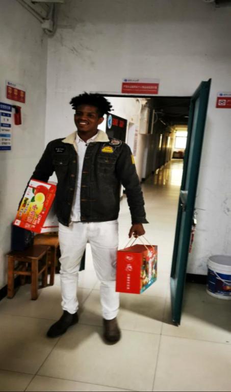留學(xué)生AHMED MOHAMED IBRAHIM (中文名馬云)收到禮物后,非常開心,豎起大拇指說工程大真好,感謝學(xué)校領(lǐng)導(dǎo)帶來的溫暖祝福和親切慰問,并表示一定嚴(yán)格自覺遵守學(xué)校的疫情防控管理規(guī)定,加強學(xué)習(xí),同時也祝福學(xué)校老師們新年快樂!